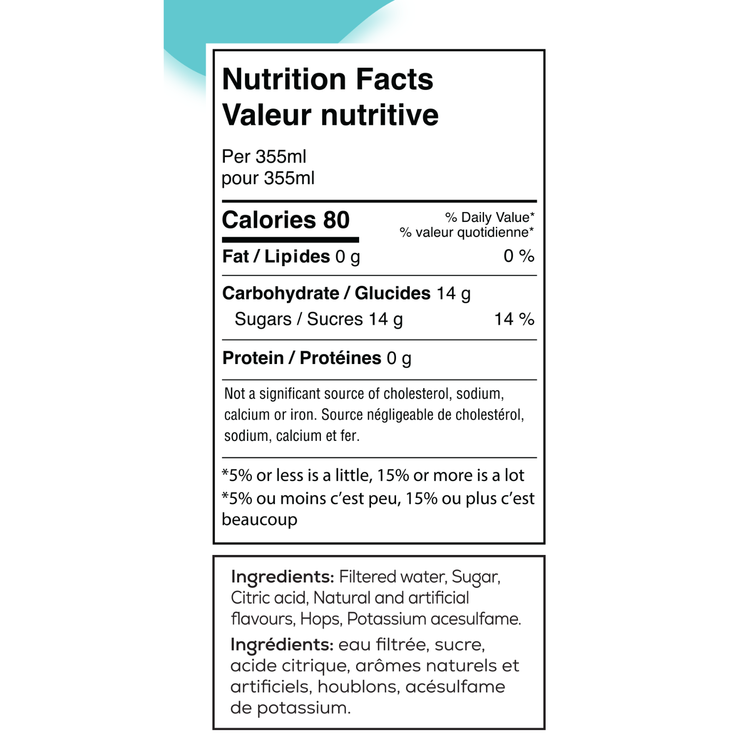 Ingredients: Filtered water, sugar, citric acid, natural and artificial flavours, hops, potassium acesulfame.