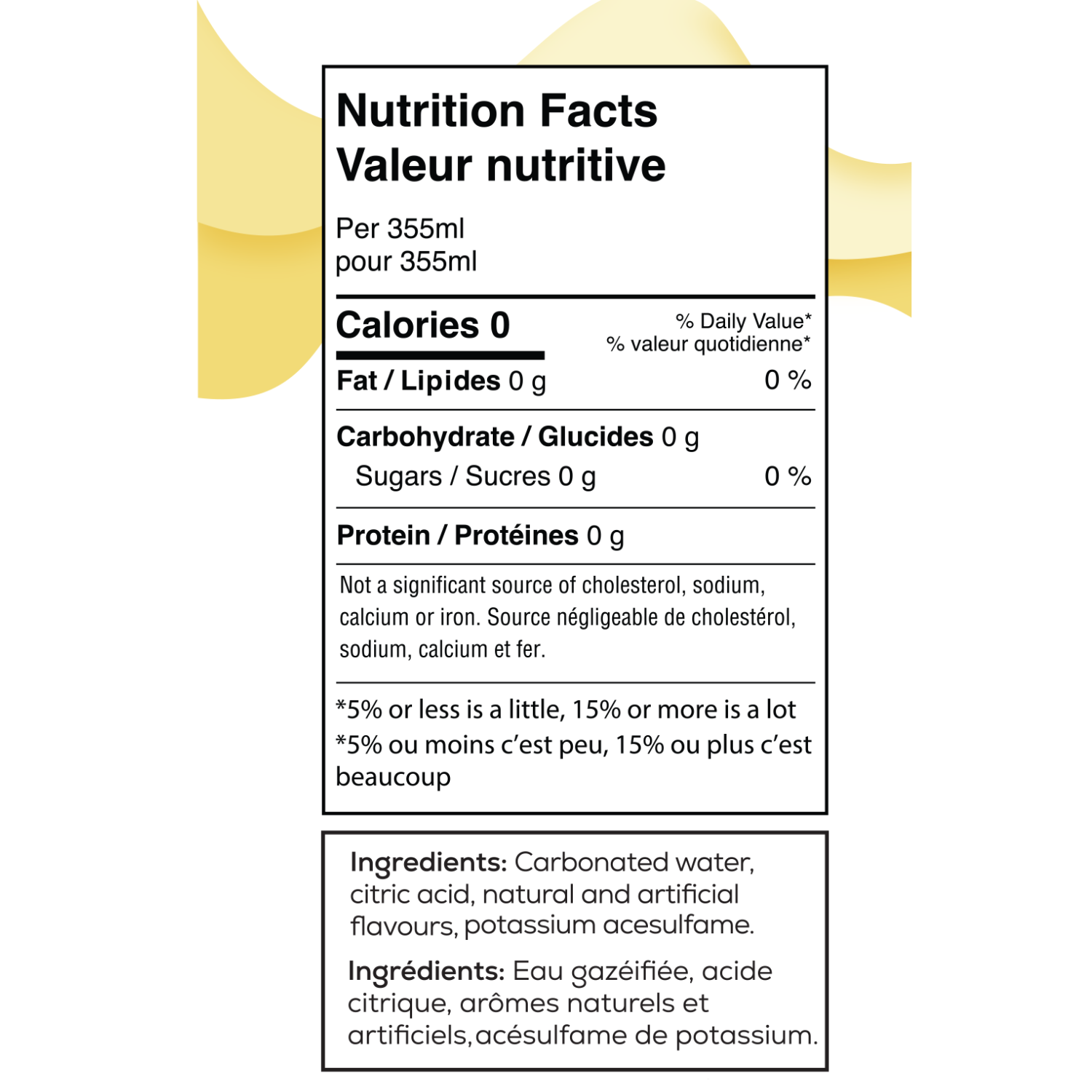 Ingredients: Carbonated water, citric acid, natural and artificial flavours, potassium acesulfame.